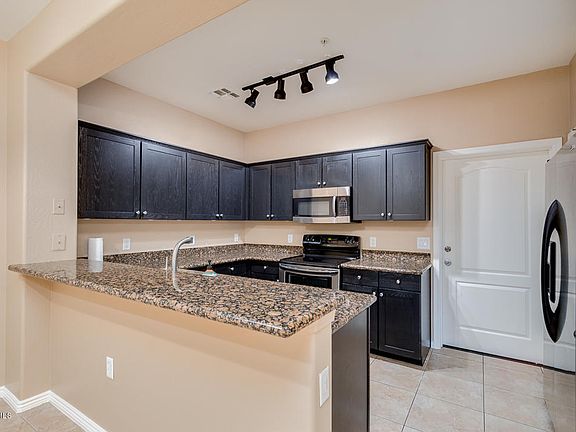 Immaculate Rialta Condominium gated community, ground floor unit featuring 2 bedrooms and 2 bathrooms. Beautiful kitchen with granite and stainless steel appliances, full dining area and living area. Freshly painted throughout and newer flooring. Laundry includes a dryer and a the larger garage has extra storage racks installed. This amazing community is close to shopping and restaurants. Come see your new home today!
