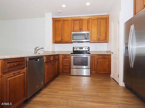 Welcome home! This stunning 3 bed 2 bath townhome, built in 2017, is completely updated with modern finishes throughout. Beautiful ceramic wood-like tile floors that give the space a warm and welcoming feel. The open-concept living area is perfect for entertaining guests or relaxing after a long day. The kitchen features stainless steel appliances, freshly painted cabinets & quartz countertops. In-unit washer & dryer included, private balcony off of the living area & attached 1 car garage. Gated community that offers other amenities such as a pool, gym, playground and multiple dog parks. Located right off of the 60 & the 202 making commutes and/or shopping and dining easily accessible! HOA included in price. **For Rent by Agent/Owner** Owner pays for HOA & garbage. Renter pays for electric, water & renter's insurance. No smoking allowed. Minimum 12 month lease. 1 garage attached to unit, surface parking available close to unit also.