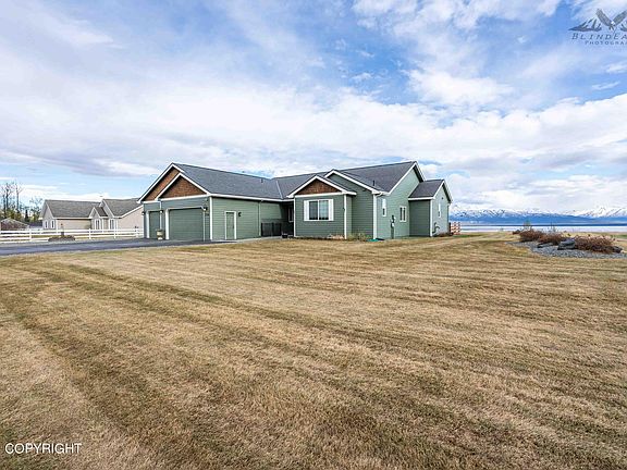 Unobstructed Chugach Mountain and Knik River Views off from this amazing Bluff Home! Master bed & 4th bedroom both have views. Beds 3 and 4 have Jack & Jill bath. Master bath has 6' jetted soaker tub, dual laves, 5' shower, Large WIC. Home features 9' and vaulted ceilings, huge walk around trex deck, gas bbq line, fire pit area, massive landscaped yard, upgraded flooring, cemplank siding.
