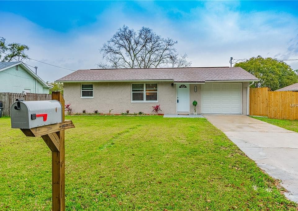 WELCOME TO YOUR EXPERTLY REMODELED HOME at 7727 Bass Ln, New Port Richey, FL. Your STUNNING new home has been renovated from top to bottom. Key exterior features are fresh neutral paint, new hurricane-rated garage door (11/2018), new AC, virtually all windows replaced, 3D shingle roof (6/2007), fully fenced yard with AMAZING water views, huge shed/workshop (3/2013), tropical landscaping, gutters, carriage lights, covered & tiled patio & long driveway to fit all your vehicles. As you step inside, you'll LOVE the warm gray color palette, the BEAUTIFUL 24"x12" floor tiles with hints of shimmer & LED lights illuminating the interior together with the SUNSHINE. The chef's kitchen features SUPERB granite counters, breakfast bar, crisp white shaker cabinets with satin nickel hardware, marble tile backsplash, stainless steel Frigidaire appliances & deep sink with gooseneck faucet. Details like Moroccan-inspired marble transition strips between rooms & the bump-out bay windows in the family room give this home a LUXURIOUS feel. The combination dining & family rooms exemplify open concept floor plan with cool features like the pendant chandelier & French doors leading to the patio & yard. The master bedroom can easily accommodate king-size furniture & has a generous walk-in closet. The private bath consists of MODERN wood-look porcelain tiles, dual sinks with granite counters, mosaic backsplash & step-in shower with double doors. The 2nd bed has a walk-in closet with the full bath nearby. THIS IS YOUR FUTURE HOME!