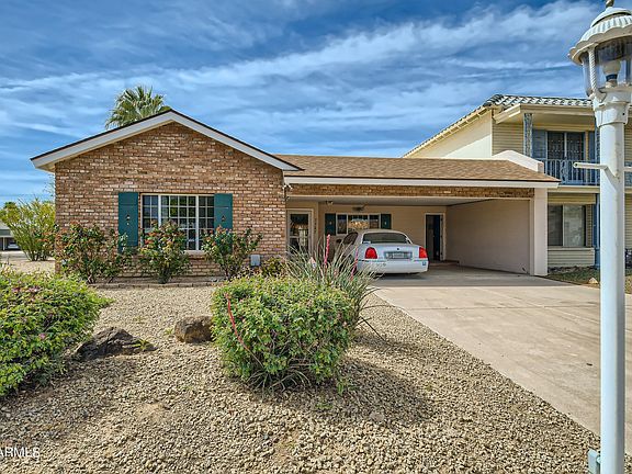 Welcome home to this charming single level Scottsdale townhome in the historic 55 plus community of Villa Monterey. As you step through the front door, the warm cozy living room says, ''Stay a while!'' There is no telling what you will cook up in this large kitchen with lots of storage and counter space...clean, uncluttered, and efficient. The adjoining dining area is perfect for hosting intimate meals for friends and family. The light and bright expansive Arizona Room with fireplace would be a wonderful space for an additional living and dining room. The large primary bedroom and in-suite bath provides a wonderful place to relax at day's end, while the additional bedroom is ideal for family, guests, storage, or in-home office. Your wicker furniture will feel right at home on the large back patio. This home boasts 2 covered parking spaces; crown and chair rail moldings; skylight for a lot of natural light; and HOA dues that are only $415 annually! This home is a very private end unit (only one shared wall) and is a very short walk to the community pool and spa. This townhome is conveniently located to Old Town Scottsdale and all it has to offer...cultural events, nightlife, fine dining, and great shopping...so, whether you are looking for a place to call home or vacation get-away...look no further.