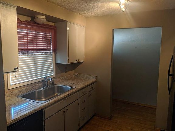 This home featuring 1024 sq. , three bedrooms and a large bathroom has great curb appeal. Complete with a white picket fence and plenty of parking. Inside you will find a large living room with a dining area off of the kitchen. The bathroom has been updated with tile floors, new vanity, sink and faucet as well as a new shower/tub combo. Outside boast a huge back yard with a covered patio. New paint inside will make this home sparkle. Great layout and priced to sell.
