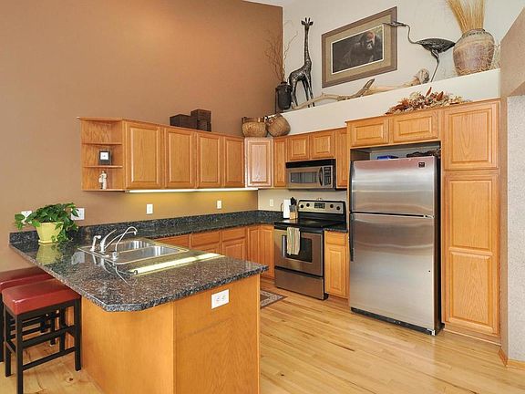 Private End Unit Town Home with Awesome Views! maintained like a 10, large open floor plan, gourmet kitchen with SS appliances, hardwood floors, vaulted ceilings, 2 gas fireplaces with wood surround, elegant master suite with separate shower and tub, many built-ins through-out, loft with balcony and office space. Totally finished lower level, deck, built-in bar area, huge L-shaped deck, walk out to wooded backyard, fire-pit, horse shoes, ice skating pond and much more! See supplement.