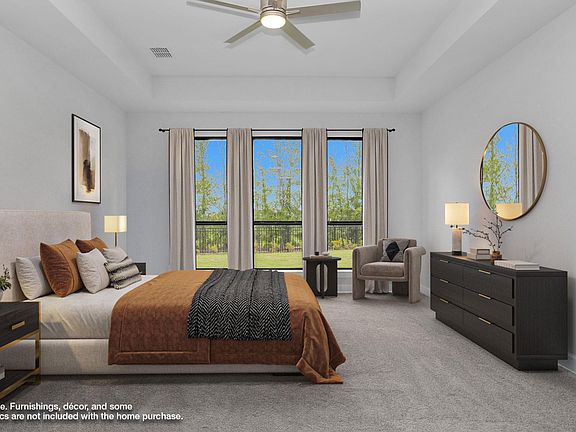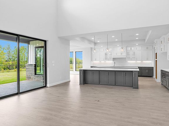 READY FOR MOVE-IN! The front porch opens into a grand entryway with an extended hallway and 16-foot ceiling. French doors lead into the secluded home office that looks out into the front of the home. An oversized guest suite is off the main hall and features a private bathroom. The formal dining room is adjacent to the curved staircase and leads into the heart of the home. The family room boasts a two-story ceiling, a wood mantel fireplace, and sliding glass door. The kitchen features two islands, double wall oven, 5-burner gas cooktop, along with ample storage space with a butler's pantry and walk-in pantry. The corner morning area is embraced by walls of windows and has access to the covered backyard patio. French doors lead into the primary bathroom. The large game room has a wall of windows and a dry bar. A half bathroom connects the space to the theatre room with features additional storage. The secondary bedrooms all feature their own walk-in closets and private bathrooms.