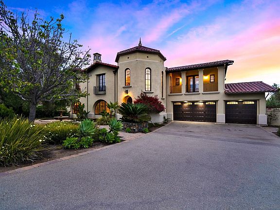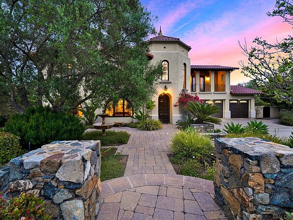 BACK ON THE MARKET THROUGH NO FAULT OF THE SELLERS! Perched atop a serene cul-de-sac street in the prestigious, guard-gated community of Cielo, this exquisite Spanish-style estate offers commanding panoramic vistas of the surrounding mountains, rolling hills, and breathtaking sunsets. Set on over an acre, this 4-bedroom, 3-bath residence seamlessly blends timeless elegance with modern comfort. Inside, rich wood and stone tile flooring flow throughout the home, complemented by soaring ceilings and expansive windows that flood the interiors with natural light and capture stunning views from nearly every area. A dramatic spiral staircase sets a grand tone, while the spacious open-concept kitchen and family room provide the perfect setting for effortless entertaining. The primary suite is a true retreat, featuring a cozy fireplace, sweeping views, and an ensuite bath. Three fireplaces throughout the home create warmth and charm, while a dedicated office offers the ideal space for remote work or creative pursuits. Step outside into your private oasis: a sparkling pool and spa, an expansive patio with a built-in BBQ, and two distinct outdoor living areas—one perfect for tranquil reflection, the other an ideal site for a future ADU or guest house. With a three-car garage, ample additional parking, and access to the award-winning Torrey Pines School District, this property offers both luxury and lifestyle. Cielo is a coveted enclave known for its privacy, prestige, and unparalleled amenities—experience a life well-lived in one of Rancho Santa Fe’s most sought-after communities. Perched atop a serene cul-de-sac street in the prestigious, guard-gated community of Cielo, this exquisite Spanish-style estate offers commanding panoramic vistas of the surrounding mountains, rolling hills, and breathtaking sunsets. Set on over an acre, this 4-bedroom, 3-bath residence seamlessly blends timeless elegance with modern comfort. Inside, rich wood and stone tile flooring flow throughout the home, complemented by soaring ceilings and expansive windows that flood the interiors with natural light and capture stunning views from nearly every area. A dramatic spiral staircase sets a grand tone, while the spacious open-concept kitchen and family room provide the perfect setting for effortless entertaining. The primary suite is a true retreat, featuring a cozy fireplace, sweeping views, and an ensuite bath. Three fireplaces throughout the home create warmth and charm, while a dedicated office offers the ideal space for remote work or creative pursuits. Step outside into your private oasis: a sparkling pool and spa, an expansive patio with a built-in BBQ, and two distinct outdoor living areas—one perfect for tranquil reflection, the other an ideal site for a future ADU or guest house. With a three-car garage, ample additional parking, and access to the award-winning Torrey Pines School District, this property offers both luxury and lifestyle. Cielo is a coveted enclave known for its privacy, prestige, and unparalleled amenities—experience a life well-lived in one of Rancho Santa Fe’s most sought-after communities.