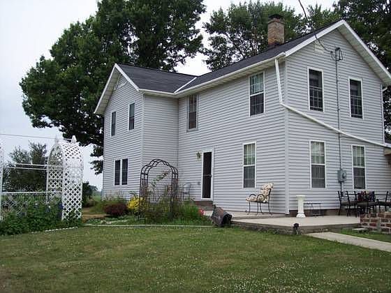 Turn of century farmhouse updated with newer roof, siding, windows, insulation, furnace, kitchen floor, electric, and doors. Hardwood floors, fruit trees and outbuilding. One car detached garage. A 2 bed 1 bath rental currently leased for $500.00 a month plus utilities included. No zoning. Rental could be used as a business building.