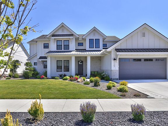 Welcome to luxury lakefront living with your own private beach in the Legacy Community of Eagle, ID! This stunning under 1-year old modern farmhouse custom home with all the designer touches boasts breathtaking views of both the lake and mountains. As you step inside this spacious open concept design 4,074 sq ft, 5 bd, 4 full baths & 2 half baths home, you will be greeted by a lake view Great room with vaulted ceiling and a gourmet Kitchen with top-of-the-line appliances, 48” Subzero Refrigerator, Thermador 6 burner gas cooktop, double oven, & double built-in microwaves, and a butler’s pantry that will make meal prep a breeze. The 1st floor main living area includes the Owner’s suite, Kitchen/Nook, Great rm, Laundry, Bedroom/office, Gym/TV room all with large windows! The 2nd floor has 3 bedrooms, each with its own full bath and walk-in closet, plus a large office or bonus room with ½ bath. HOA includes free Champion 3 hole Golf course, tennis, swimming pools, soccer and walking paths!