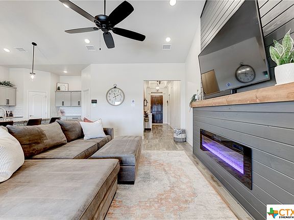 Welcome to this stunning 2021 Tippet home in the neighborhood of The Reserve at Pea Ridge. Located in Belton ISD, this property is just a short drive away from restaurants and shopping centers. ~15 min drive to Baylor Scott & White Hospital and Belton Lake ~35 min drive to Ft. Cavazos (Ft. Hood). This custom build home offers an open floor plan, a three-car garage, and sits on a beautifully landscaped lot. Greeted by a grand foyer with high ceilings, wood plank tile flooring, custom lighting, floor-to-ceiling electric fireplace (recent addition), and wooden support beam across the living room. The kitchen is complete with granite countertops, custom cabinets, updated walk-in pantry, and stainless steel appliances. The large backyard encompasses the following recent additions: mini bar, built-in grill, wood deck, outdoor ceiling fans, and plenty of space for entertainment. Without backdoor neighbors, privacy is all yours! Don't miss out on this opportunity to own this beautiful home.