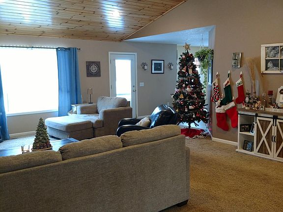 Vaulted tongue and groove living room ceiling, huge master bedroom, plus an oversized master bathroom with a separate jacuzzi tub and shower. Kitchen has lots of cabinets and a breakfast bar. Not to mention the 3.3 acres it sits on and the double detached garage with unfinished upstairs. Fenced in back yard with a spigot for watering.