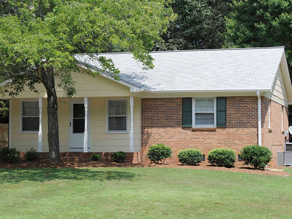 Located in north Raleigh, this attractive three bedroom home has had numerous upgrades within the last few years including painting inside and out and features a new kitchen with cabinets extending to the ceiling with a large lazy susan, a new above the range microwave, new countertop, sink and faucet as well as new flooring extending from the kitchen through a large combination dining room and study or TV room. The hall bathroom was also treated with new flooring, lighting, vanity, sink, toilet and a shower bath area with all new plumbing fixtures with a lifetime warranty. The wall to wall beige carpeting is new throughout the house. A washer and dryer with new flooring are also included. Lighting fixtures throughout the house as well as new electrical receptacles were installed just a few years ago. New blinds were installed at all windows and the back door for immediate privacy. The home is all electric with central heating and cooling. The exterior has a rocking chair front porch, a spacious concrete patio in the back and color keyed storm windows and new storm doors. Shopping is convenient with restaurants and fast food stores in walking distance