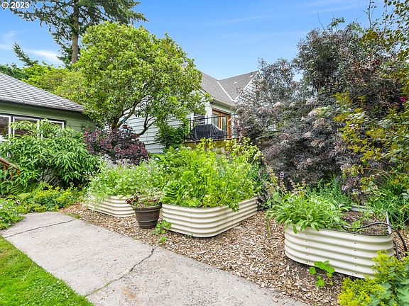 Gorgeous Home & Garden in Burlingame! Built in 1941 with charming original built-ins, archways and glass door knobs, this home has been updated to accommodate a modern lifestyle. Formal entry opens to large living room with big windows on both sides of the room and original wood burning fireplace. Formal dining room with lead glass china hutch and sliding glass door that opens to the sunny upper deck. Elegant updated kitchen features quartz counters, SS appliances, fashion hardware, extra pantry storage surrounding inset refrigerator and a comfy spot for morning breakfasts. Big primary en-suite with walk-in closet area. Updated spa-like bathroom with double vanity, large shower and claw foot soaking tub. Lower level has additional spacious family room with fireplace, 2 more bedrooms, laundry room and full bath. Exterior exit opens to patio that leads to the wonderfully designed garden spaces for multi-seasonal enjoyment. Great layout for potential Airbnb guest space below or separate office space & guest room. Deep 1 car garage and off street driveway parking. Low maintenance metal shingle roof. Stellar neighborhood and collection of homes conveniently located to Barbur Blvd, Terwilliger & I5 access. 6 min to Willamette River where you launch your kayak! See virtual tour links for more information! [Home Energy Score = 5. HES Report at https://rpt.greenbuildingregistry.com/hes/OR10218542]