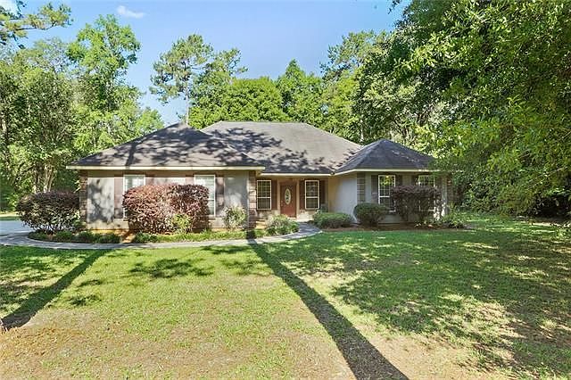 Tranquil Hurricane Haven on 1 acre lush lot. Open floor plan w/ custom cherry cabinets ,SS appliances. Wood laminate in kitchen & living & 1 Bedroom. New carpet in Master & 3rd bedroom, Master bath has dual sinks, soaking tub & separate shower plus handicap accessible doors. Laundry room easily accessible to Master & attached 2 car garage. 3rd bedroom could be dining or office.