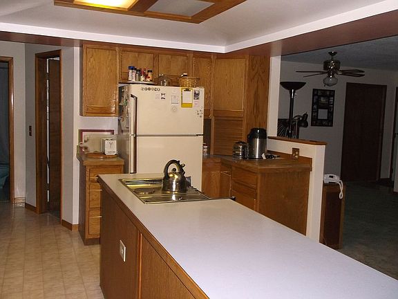 This family home is a ranch style house with a full finished basement and attached two car garage. It is surrounded by blue spruce and pine trees. The open concept living room, dining room, and kitchen is wonderful for family meals and activities. The solar gain from the picture windows is wonderful and saves on heat. The kitchen and pantry provides ample work space and storage. The beautiful oak cabinets include pull out lower shelves. The kitchen island with set in stove/oven provides additional counter space, the perfect place to prepare food. There are five bedrooms, three upstairs and two down. Office space on the main floor. A full bathroom on both levels and a laundry room on the lower floor across from the bedrooms. The basement family room with picture window, wood stove, and wet bar are so comfortable you will find yourself enjoying this space year round.