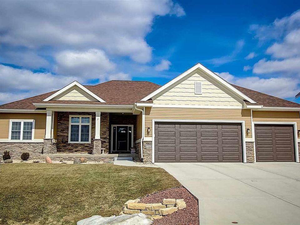 You'll find this beautiful 5 bedrm like-new Ranch nestled on a giant lot in popular neighborhood! Walk in & notice the large great rm w/cathedral clg & frplc that is wide open to a beautiful kitchen w/granite island & SS applcs! Very sought after open floor plan w/split bedrms! Huge Master bedrm w/tray clg, walk-in closet & private bath w/tiled walk-in shower. Big 3-season sun rm & maintenance-free deck! Walkout L/L offers a large family rm w/wet bar, 2 add'l bedrms & 3rd bathrm - perfect for visiting guests or in-law suite! This neighborhood is surrounded by nature & bike trails! 3 car garage w/stairs to bsmt!