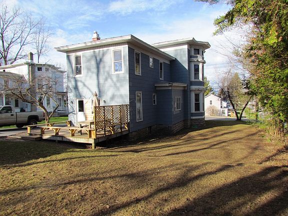 Large rooms! Move right into this made for large family home walking distance to the school, hospital, and fair grounds park. Replacement windows all around. 28x24' garage. Deck off the rear. Large living room with gas fired fireplace, built in shelving and box beam ceiling. Formal dining room. Family room with fireplace. Huge country kitchen with all appliances to go plus extra refrigerator. Huge bedrooms with one room could be a fourth. Laundry with washer and dryer included located on first level. 125AMP electric service. Natural gas fired hot water.