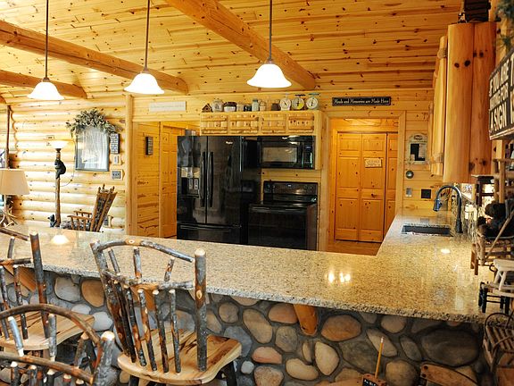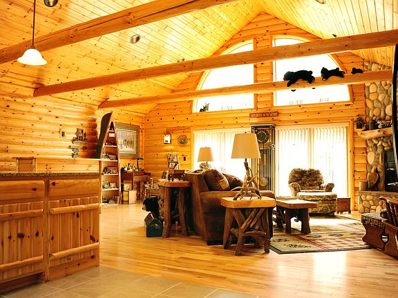 CUSTOM BUILT LOG SIDED 2+ BEDROOMS WITH 2 BATHROOMS LOCATED ON 10 BEAUTIFUL WOODED ACRES OF LAND WITHIN 15 MINUTES OF SAULT STE. MARIE. YOU WILL LOVE THE OPEN CONCEPT W/TONGUE & GROVE WOOD CATHEDRAL CEILINGS & WALLS. SPACIOUS KITCHEN FEATURES GRANITE COUNTER TOPS, CUSTOM KITCHEN CUPBOARD WITH SMALL RIVER ROCK BACK SPLASH. THERE IS EVEN A 3 TEMPERATURE BEVERAGE CENTER. LIVING ROOM FEATURES A BEAUTIFUL FIELDSTONE FIREPLACE, SOLID HICKORY FLOORS, ANDERSON WINDOWS THROUGH OUT & LARGE CEDAR LINED CLOSETS IN THE BEDROOMS. THE FULL BATHROOM HAS A CERAMIC TILE DEER MURAL IN THE TUB-SHOWER. YOU WILL ENJOY YOUR MORNING COFFEE IN THIS 14 X 28 - 3 SEASON ROOM HAS AMAZING VIEWS OF ALL TYPES OF WILD LIFE. FOR YOUR ENJOYMENT THERE IS EVEN A SPA ROOM WITH A 5 PERSON ARTIC SPA. SAUNA DOES NOT REMAIN.