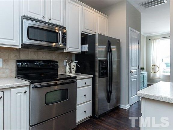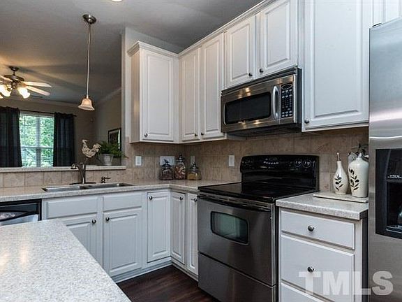 WOW! This is it! Near I-40/540/RTP & RDU. Gorgeous Brier Creek Townhome features wood style floors entire 1st floor, frieze carpet upstairs, NEW INTERIOR PAINT, SEPARATE DR, crown molding, gas fireplace w/marble hearth, solid surface ctrs, extended bar, stainless appliance package, tiled flrs in bathrooms, ceiling fans, vaulted master bdrm w/walk in closet & garden tub. Large secondary bdrm w/private bath. HARD TO FIND Private back patio w/ wooded lot/views. Security System. Pool & Clubhouse community.