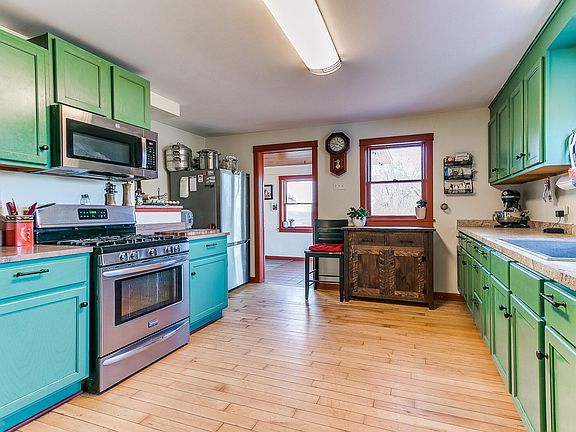 Be prepared to fall in love with this delightful acreage on 5.28 acres of land! This charming home is set off the road by a long driveway and sheltered by well-established windbreaks and mature walnut stands. The cozy interior includes a spacious kitchen, sun room, and living room with a high efficiency rotating wood stove for 360 degree enjoyment. The large deck, adjoining pebble patio and fire pit are perfect for entertaining family and guests. Updates include a complete remodel downstairs and new deck in 2021, and new roof in 2019. Bring your horses, goats, cows, pigs and poultry - this property has housed them all! Livestock-ready facilities include 3 acres of fenced pasture, dry lots, and flexible use outbuildings including a 24x36 sheep barn, 30x64 pole barn, 28x32 shop/garage and divided chicken coop with adjoining poultry pasture. The property offers the perfect degree of privacy and country living, but is merely a convenient 5 minutes drive away from amenities such as grocery and farm supply stores, restaurants, and a gas station. Properties like this do not come up often - don't miss your chance to fulfill your hobby farming dreams, and schedule a showing today!