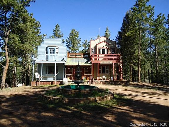 Unique mountain home with amazing energy. Built by a famous set designer, mimics an old western town on the exterior. Radiant in floor heat throughout, Sunny and bright with large floor to ceiling windows. The land is amazing with RV site, chicken coop, round pen and greenhouse. (Truck water tank is negotiable) Zoned for horses and no covenants in this subdivision. Screening room in basement partially finished, plenty of storage, 6 burner range, large deck on main level plus master suite with deck on upper level. This home with it's one of a kind design would make a fantastic BnB, vacation rental or wedding venue. Great find for investors who want their guests to pay their mortgage. Pikes Peak area home for sale! Teller county rural property good investment potential.