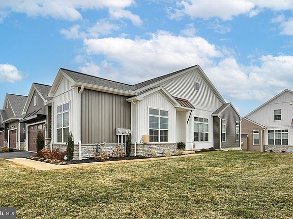 Are you an empty nester wanting to travel more and do less maintenance? Do you want to take advantage of all a community offers?  Look no further than Cortland Park at Winding Hills and this 55+ community! This former model home, end unit townhome features an amazing open floor plan that flows like a dream and has so much natural light flowing through the windows. Stylish luxury vinyl plank runs throughout the main living areas. A beautiful kitchen with quartz counters, upgraded stainless appliances including a gas range, tile backsplash, a corner pantry to house all your goodies and so much storage space with an abundance of cabinets. The stone surround gas fireplace with box beam mantel is your focal point in the living room and the perfect spot to curl up on those chilly days. The space is big enough for a wraparound sofa, so there’ll be plenty of seating for everyone! The owner’s suite features a gorgeous private bathroom with a double-bowl vanity and a 5’ tile shower. An additional bedroom and bathroom are on the opposite side of the home, along with an office where you can work from home or have a quiet space to read and work on your craft projects. A neutral palette so you can move right in! Enjoy the outdoors on those warmer days with your beverage of choice on the patio. 2 car garage, economical natural gas heat, mud room off the 2-car garage and a 2nd floor storage area and so much more await you. This Community includes a club house, pool, walking trails, and is close to major highways and local amenities.