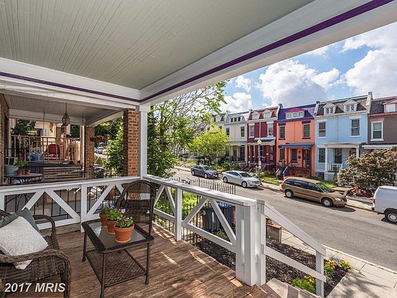 Nicely renovated in Columbia Heights with HUGE LOT and plenty of off str parking, nice natural light throughout, original gleaming hd flrs, cozy front porch, open kitchen with exposed brick, stainless steel appliances and private back deck with green space. Sun filled bathroom with sky light. Unfinished basement with great potential. New complete HVAC system. A short 2 block walk to CH Metro!