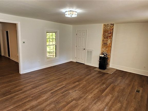 - Description: Vaulted ceiling, exposed brick chimney