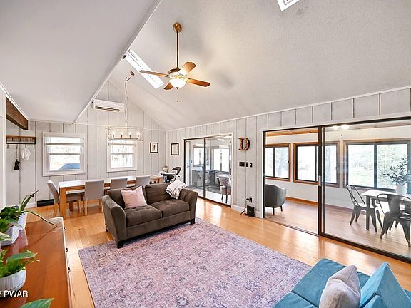 Beautifully updated LAKEFRONT home on Deerfield Lake, in four-season amenity filled community in The Northern Poconos, just two hours from the NY, NJ and Philadelphia Areas. The lake is a 24 acre, private, non-powerboating lake for kayaking and other lake activities, electric motors permitted. The large, wooded property combined with the modern ''rustic chic'' home gives the highly sought after ''Mountain Lake'' feel. The brand-new kitchen is absolutely gorgeous, open floor plan, high ceilings, large sunroom with knotty pine ceilings, lots of windows and lake views! Mini Split Units with A/C throughout, NEW ROOF. Walk-out lower level with large rec room with woodstove, 4th bedroom/office, 3rd bathroom, large laundry room, access to the large covered patio and private lake front proper, Beds Description: Primary1st, Beds Description: 2+BED 2nd, Baths: 1 Bath Level 1, Baths: 1 Bath Level 2, Baths: 1 Bath Level L, Eating Area: Dining Area, Beds Description: 1BedLL