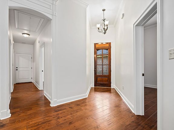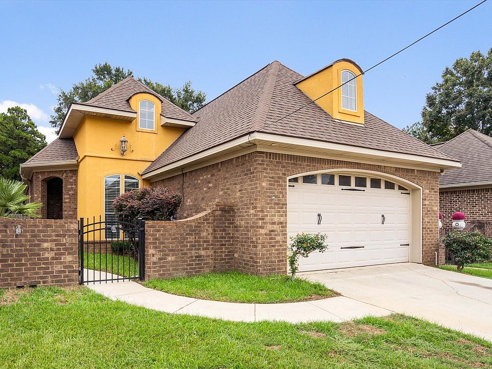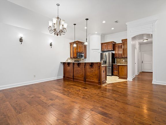 3 bedrooms and 2 bathrooms in ST FRANCIS PLACE Subdivision. High ceilings and an open floor plan, seamlessly connecting the living room, kitchen, and dining areas. Hardwood floors grace the living spaces and bedrooms, while tile adorns the wet areas. The home showcases 11-foot ceilings, crown molding, and elegant arched walkways with faux transom wood molding. The kitchen is equipped with granite countertops, stainless steel appliances, a pantry, and a large breakfast bar. The living room is highlighted by a gas log fireplace and mantel, the primary bathroom offers a separate bathtub and shower, water closet, double sink vanity and walk in closet. Additional features include a covered back porch, back deck and patio all for your outdoor relaxation. Furthermore, the HVAC system is only a year old.