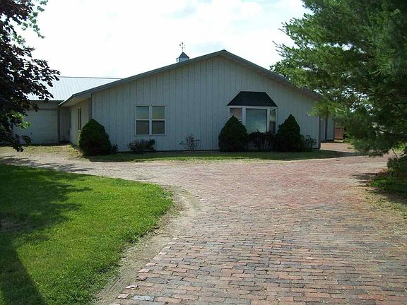 Very unique home and workshop combination! Living area is approx. 1600 sq.ft. and boasts an open floor concept that includes a kitchen w/solid oak cabinets, and an l-shaped living/dining room combination, 2 BRs, 2 full baths, and a utility room. The attached 40 x 110 workshop/garage is a hobbyist's dream! With concrete floors, 2 oversized garage bays on the North (Bay 1: 39 x 20 w/drain & a 14 x 8 overhead door. Bay 2: 39 x 19.5 w/drain & a 10 x 8 overhead door). On the South side are 2 more bays (Bay 3: 39 x 19 w/ a 10 x 8 overhead door, Bay 4: 13 x 20 with an attached storage/paint room w/ drain). Located between garage bays is a 39 x 30.5 open workshop area. The entire garage/workshop is equipped with overhead lights, 166,000 BTU hanging furnace, welder and plasma hookups, compressed air lines for your air compressor, and a large exhaust fan. The exterior of the property features all metal roof and siding. Septic system on prop. shared w/neighbor.