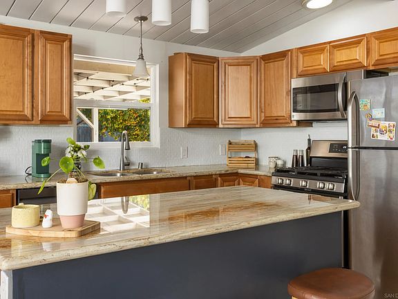 Welcome to your dream home nestled in the heart of tranquility! This charming 3-bedroom, 2-bathroom home is a testament to comfort and convenience, offering a perfect blend of modern amenities and timeless appeal. Located in a quiet neighborhood at the foothills of Mt. Helix, this home provides a serene retreat while still being within arm's reach of all the essentials. Step inside to discover the warmth of rich hardwood flooring that gracefully extends throughout the entire home, creating an inviting atmosphere that complements any decor style. The open-concept living and dining areas boast vaulted ceilings, that continue into the bedrooms, enhancing the sense of spaciousness and airiness. The heart of this home is undoubtedly the well-appointed kitchen, equipped with contemporary appliances and ample counter space, making it a delight for both aspiring chefs and casual cooks alike. Imagine preparing delicious meals while enjoying the view to the backyard with your own grapefruit and tangerine trees! One of the standout features of this property is the expansive backyard – a true outdoor haven. This backyard is not only large enough for a pool but also has the potential for an additional dwelling unit (ADU), allowing for versatility in how you utilize this fantastic space. Convenience is at your fingertips with local amenities, schools, and parks just a stone's throw away. Whether you're looking for a quiet escape or a place to entertain friends and family, this home checks all the boxes.