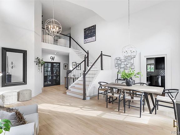 Step inside to vaulted ceilings and warm-toned natural hardwood floors. The open floor plan includes a large separate dining area, a front sitting area, and a home office perfect for remote work. The gourmet kitchen includes stainless steel appliances, stone countertops, and ample cabinet space. It flows seamlessly into the living room, where a natural gas fireplace and upgraded windows enhance the home's contemporary feel. Upstairs, there is a loft area, a separate laundry room, and three bedrooms. Retreat to the primary suite, featuring a 5-piece upgraded bathroom and a customized walk-in closet for ultimate organization. The additional bedrooms are adjoined by an updated Jack-and-Jill bathroom. The finished basement is a versatile space designed for both relaxation and entertainment. This impressive area features a separate bedroom and a full bathroom with a customized tile stand-in shower. The downstairs bar with a mounted TV is perfect for hosting friends and family. Adjacent to the bar, the spacious living area provides a cozy retreat for movie nights or unwinding after a long day. And my favorite part, the backyard oasis, is a custom-designed haven of luxury living. The professionally built-covered patio exudes elegance and comfort, featuring an outdoor bar made of natural wood and exterior heaters, ensuring year-round enjoyment. This inviting space is perfect for entertaining, whether hosting summer gatherings with friends and family or simply relaxing in a warm, welcoming atmosphere. Pull out of your 3-car garage, and in just 5 minutes, you're at the grocery stores or eating at the many restaurants at the Prairie Center; convenience is at your doorstep. Not to mention the close distance to 2 major highways making an easy commute to Downtown Denver, the airport and just about anywhere in Denver Metro.