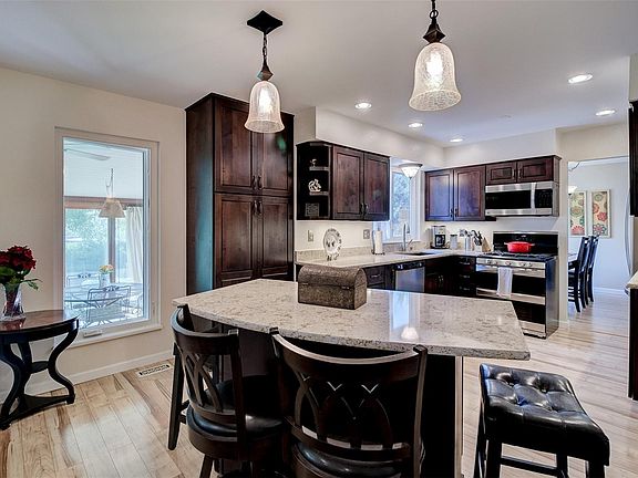 Rare opportunity to own this fantastic remodeled 4 bedroom, 3 bathroom home- large lot on cul-de-sac! The backyard is like no other- beautifully landscaped w/lots of mature trees, awesome year round enclosed sun-room w/4 double pane sliders, and additional outdoor stamped concrete patio. Kitchen reconfigured with updated cabinets, Coretek flooring, quartz countertops, newer island seats 4, gas stove/double oven/top French door fridge w/bottom freezer/dishwasher- all stainless appliances stay! Master oversized with sitting area, wood floors, walk-in closet, en-suite ¾ bath, mountain views! 2nd bedroom oversized 2 closets & access to hall guest bath. 2 additional upstairs bedrooms. Newer windows thru-out main and 2nd floor. Updated driveway/patio. Finished basement. 2 car attached garage w/newer doors. Backyard also features shed, raised garden beds, newer fencing around backyard. Close proximity to light rail, 225, shopping, and 2 miles to Buckley AFB!!! This home is a must see!