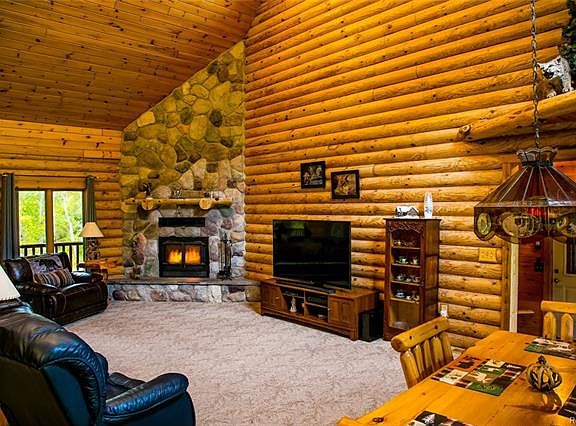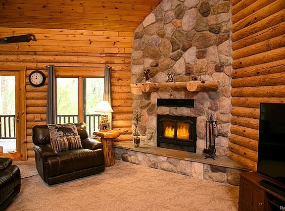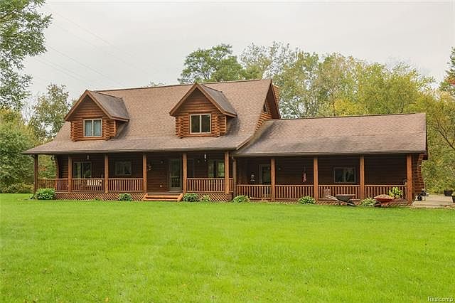 Gorgeous log home in super location close to all convinces and in Marysville school district! Everything your looking for is right here. Custom built in 2000 w/over 6 acres of property partially wooded on Pine River. Features long circular driveway, 4 bedrooms, 3 full bathrooms, walk out finished basement, 2 ½ car attached garage, 32 X 50 pole barn w/concrete floors and 220 power & stocked pond with floating dock. Updates include, furnace and central air in 2016, black top driveway 2018, updated master bathroom and shower tile, updated main full bathroom, stained exterior & custom log steps off front and back. Many of the log furniture will stay along with stove and refrigerator.