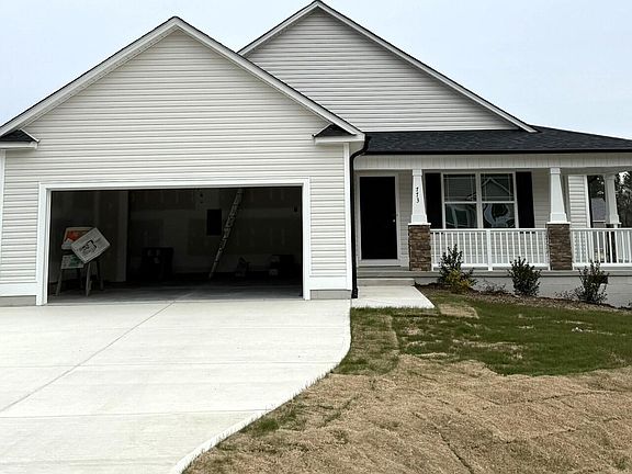 Fantastic ranch plan with a rocking chair front porch! Large family room with fireplace that is open to the kitchen that offers granite, tile backsplash, SS appliances, breakfast nook and FRIDGE! Owner's suite with trey ceiling, WIC, dual vanity, garden tub and separate shower. 2 additional good-sized bedrooms and full bathroom. Covered porch in back is great for entertaining guests. 2 car garage. See agent remarks for more info!