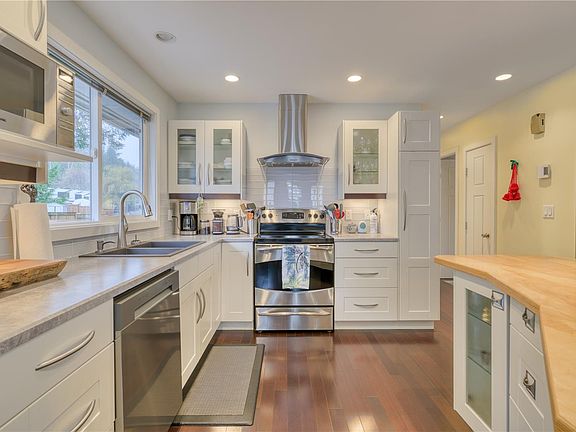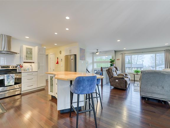 Immaculately maintained 4-bedroom, 2-bathroom home offering a bright and functional layout. The main level features hardwoods floors in living room/kitchen, an open-concept kitchen with a large island, stainless steel appliances, and a dedicated dining area with patio doors leading to a spacious deck overlooking the private yard that offers additional storage options. An updated full bathroom with tile shower and three well-sized bedrooms are on the main floor, including a generous primary suite with a walk-in closet. The lower level adds excellent versatility with a flex room, large bedroom, full bathroom with a tiled walk-in shower, separate laundry room, pantry storage, and direct access to the covered carport. Exterior parking for three vehicles. Currently rented month-to-month at $2,800 per month, offering a strong investment opportunity. Call your agent to view and see if this home is right for you!