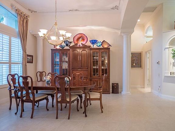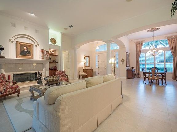 THIS IS A VERY SPECIAL HOME WITH GOLF COURSE VIEWS!! THIS SPACIOUS OPEN FLOOR PLAN IS MOST APPEALING TO TODAY'S BUYERS. Stunning custom Todd Johnston enlarged Stratford III model lives large at 3,614 sq. ft. under air with 3 Bedrooms, 3- 1/2 Baths, a Den, separate Living Room & Family Room & a Flex room currently used as a 2nd Den. Both dens have beautiful built-in cabinetry. Some of the many features include a gorgeous foyer entry with 14" coffered ceiling, beautiful light 20" tile, crown moldings, built-ins and niches throughout, plantation shutters, fireplace, wood floors in dens, window seats and more. Lights in living room built-ins. Chef's kitchen features 12' ceilings w/crown molding, built-in breakfast nook, Canadian hard rock maple cabinet doors and drawer fronts, crown molding on cabinet tops, 5-burner gas stove, warming drawer under built-in oven, kitchen island, walk-in pantry and lots of cabinets. Seating area, wood floors, bay window and double step ceiling in master bedroom, dual shower heads in master bath. There are 2 lanais for your enjoyment, a summer kitchen and solar heated pool and spa. There is a 3-car side entry garage, 2 A/C units, extra box generator and tempered, tinted hurricane thermo pane windows. Don't wait...this home is exceptional. WELCOME TO YOUR HOME IN PARADISE! Please check out the virtual tour for more spectacular photos.
