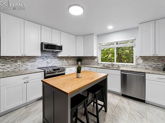 Charming 4 Bedroom, 4 Bath Home with Stunning Views and Finished Walkout Basement! Welcome to your dream home in this serene and picturesque part of Colorado Springs! This beautifully maintained four bedroom, four bathroom residence offers unparalleled views and is just a short walk to the expansive Blodgett Open Space, perfect for nature enthusiasts and outdoor adventurers. Gourmet Kitchen is newly updated with white cabinetry, elegant granite countertops, newer appliances, and a versatile portable island. The adjacent dining area and large pantry provide ample space for all your culinary needs. The spacious living room features a gas fireplace, custom built-ins, and access to a covered deck where you can enjoy the views of the open space & backyard. Main floor also includes a laundry room and a powder room for added ease and functionality. The upstairs primary bedroom, offers beautiful views of the open space and boasts a private, en-suite full bathroom. Two further bedrooms on the upper level share an updated hall bathroom. Finished Walkout Basement. This versatile space includes a workout/rec area, an additional bedroom, and a remodeled full bathroom with double sinks. The spacious backyard has mature trees & provides a peaceful setting for relaxation and entertainment. The home is also equipped with an Ion Solar System to help keep utility bills low. Surround yourself with nature and enjoy the quiet atmosphere of this lovely Colorado Springs neighborhood. With easy access to miles of trails and vast open spaces, this home is a true gem!