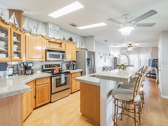 ONLY THE BEST WILL DO!! Must see this GRAND HORIZONS ALL NEWLY UPDATED INSIDE & OUT, Jacobsen Home with GREAT Curb Appeal! Striking Metal ROOF 2018, New Exterior Paint, Tropical Landscaping & Decorative Epoxy driveway welcomes YOU! Enter thru leaded glass door into Light, Bright, OPEN Plan with new FLOORS, New interior Paint, Serene Decor, Dining Area with bay window, Upgraded Kitchen with Granite Transformation counters, center island high bar, etched glass panels, wood cabinets PLUS Water Softener/Filtration System. ENCLOSED Florida Room has double pane thermal Windows, AC, New Vinyl Floors, recliners & TV... perfect place to Relax or Entertain Guests with Access to the Carport and Sliding glass doors to OPEN Spacious Family Room, just off kitchen... SO MUCH SPACE to enjoy friends and family! Split bedroom plan with 2 guest bedrooms and bath at front of the home with SPACIOUS Master Suite at rear for Privacy. Each wing has a separate living area and floor plan is like 2 homes in one, with KITCHEN as the center hub. Inside utility room with Washer, Dryer, Built-in utility sink & storage cabinets. Attached Utility shed is LARGE with additional storage & workshop... OWN your land in this 55+ community with resident owned clubhouse, swimming pool, hot tub, billiards, library, craft room, shuffleboard, planned activities & travel excursions. SEE FEATURE LIST for ALL improvements, BRING YOUR SUITCASE & MOVE Right In! Almost New FURNISHINGS NEGOTIABLE! CALL today and Make it Yours before it's SOLD!