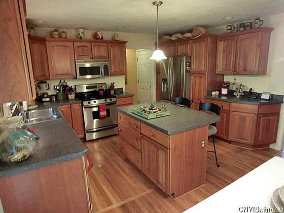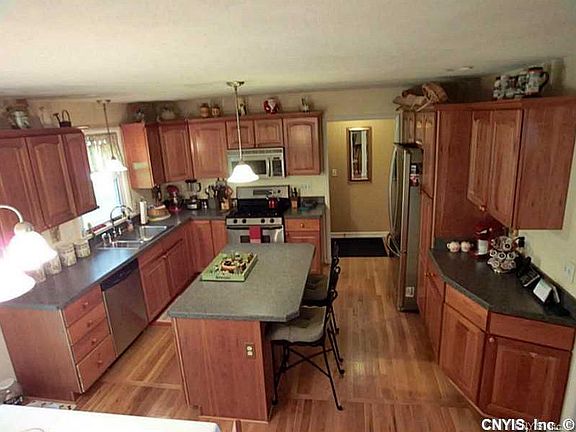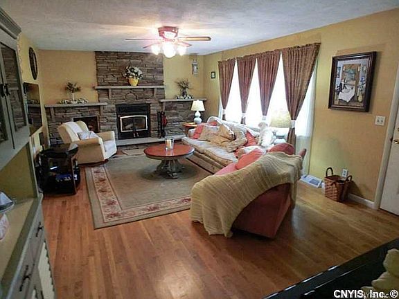 Welcome to country living with the convenience of the suburbs!!This beautifully updated ranch sits on 1.25 wooded acres w/ additional heated pole barn w/ electricity!! Updates include but aren't limited to all majors: roof, windows, siding, furnace, kitchen. Heated 45' x 35' insulated pole barn with electricity, a propane heater, wood stove and projector w screen which has been used for entertaining and gatherings for years!! Pole barn can be used for the auto enthusiast as will hold up to 13 automobiles. Basement beautifully finished with it's own electric fireplace to set the mood.
