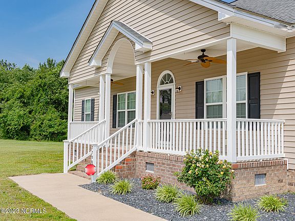 Back on the market through no fault of seller and no inspections done, buyer just decided to go in a different direction. Situated at the end of a quiet cul-de-sac, this charming 3 bed, 2 bath ranch home won't last long. Step into your new home from your rocking chair front porch into your spacious family room with vaulted ceiling. Kitchen showcases a gas stove and stainless steel appliances including refrigerator; the main living area has an open floor plan making entertaining easy and enjoyable. The master bedroom has tray ceiling, private bath, walk in closet and access to back patio. Relax on your large, rocking chair front porch complete with two ceiling fans or on the back patio which is perfect for grilling or a fire pit. Situated on .91 acres, it has a large backyard with a fenced in dog pen with it's own water bib - great for pets.