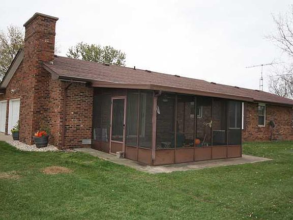 Location Location All brick ranch on 3 acres close to 65 plus minutes from downtown. Many updates including appliances . Screen porch Brick fireplace in Family Room , Pole Barn Dining room has Bay window. New roof in 2006.Workshop in barn.oversized attached garage with utility sink. Lots of storage