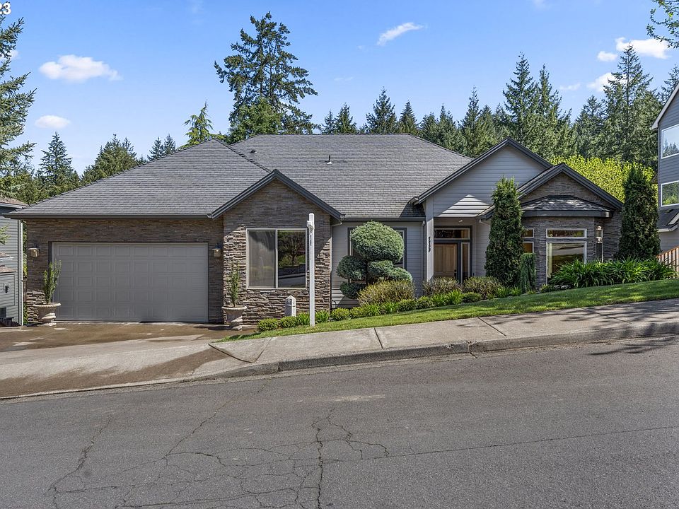 Custom built spacious home on a beautiful private greenbelt with a stunning backyard garden. Brazilian red cherry floors in formal dining and living room. Travertine stone floors in main level living area and primary bath. Primary suite and laundry on the main level. Washer and Dryer are included. Main level office would make a perfect nursery. Both levels have newer carpeting (2021) and a Central Vacuum System for easy clean up (all attachments included). All 3 bedrooms have large custom walk-in closets. Granite on all counters including the 2nd level family room wet bar w/ sink and icemaker. Cherry cabinets throughout. 10ft ceilings on both levels. Tons of additional storage areas including a 11x8 sq ft tiled room to use as a wine cellar, pet room, or creative space. Huge bonus room or nonconforming 4th primary suite with int/ext access and comes complete with a mounted TV and remote. Extra-large double garage with storage cabinets and racks. Exterior was painted in 2020. New TREX decking on main deck, perfect for a barbeque and outdoor seating area. The backyard patio is covered in beautiful cedar wood with lots of lighting. Enjoy your own thriving Palm tree, Magnolia trees, fragrant Japanese Snowbell tree, a variety of Lillies, and so much more. No HOA. Close to shopping, restaurants, Intel, Nike and so much more.