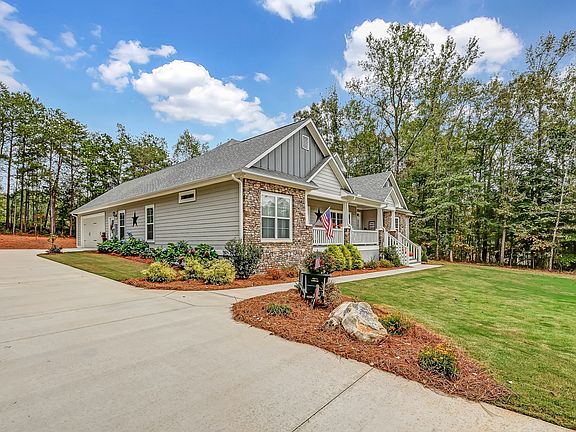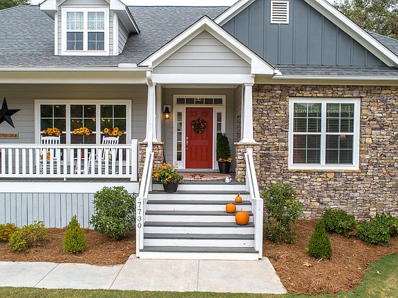 MAGNIFICENT Rare 1-level living in better than new 2-yr young home. Wide Open concept w/vaulted ceilings & walls of windows; French doors to private backyd. Cozy Covered deck w/TV wiring plus huge extended patio/courtyard. Tree-lined views in private backyd. Owner's Suite + 2 en suite Bedrms + 4th bedrm + 14x14 Bonus/Flex Room. Sunlight streams into this beauty. Gorgeous Wide plank flooring. White Gourmet Kit w/exquisite granite; Large island/bar. Open to family room. Owner's suite w/spa bath; plank tile flooring; Frameless shower, double vanity, 2 walk-in closets. .62 acre on perfectly level lot. Relaxing & Cozy Rocking Chair Front Porch. Oversized Side-Entry Garage w/room for storage. The backyard's extended patio wraps around the covered deck and around to the driveway. Beautiful gardening areas. The covered deck has lovely shades to open up or down providing full light or shade. You will find all the latest features as if you are stepping into new construction but better because of all the many extras added. including landscaping and hardscapes. Meticulously maintained. Large laundry room with shelving. Long driveway provides extra parking for guests. Beautiful new subdivision w/Swim & Tennis. Convenient to GA 400 and just a few miles to Lake Lanier, North GA Outlet Mall w/all of its surrounding shopping areas. Enjoy a beautiful drive to Dahlonega and North Georgia Mountains or hop on 400 to drive into Atlanta. What a perfect location!