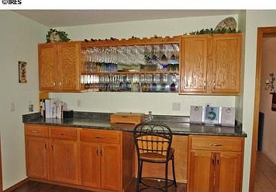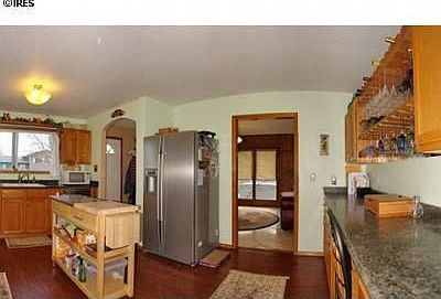 Light and bright and updated. Beautiful oak kitchen is open to sunny living room with Travertine tile. Vinyl windows. Four bedrooms and the 1/2 bath could become a 3/4 bath. Cozy family room. Nice new flooring throughout most of the house. Beautiful 20x25 Trex deck on sunny south side. Gorgeous landscaping with flagstone walkways, stone patio and firepit, sprinkler system, wood fence with double gate and a large shed. Should be space to build garage/check with Town of Wellington.