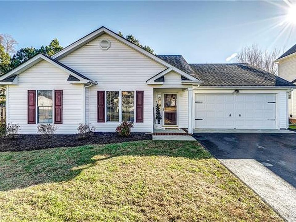 Ranch style home in Ashbrook Subdivision with familyl room with gas fireplace, 3 bedrooms, 2 baths, 2 car garage, fenced rear yard, heat pump/central air Schools: Clover Hill Elementary Swift Creek Middle Cosby High