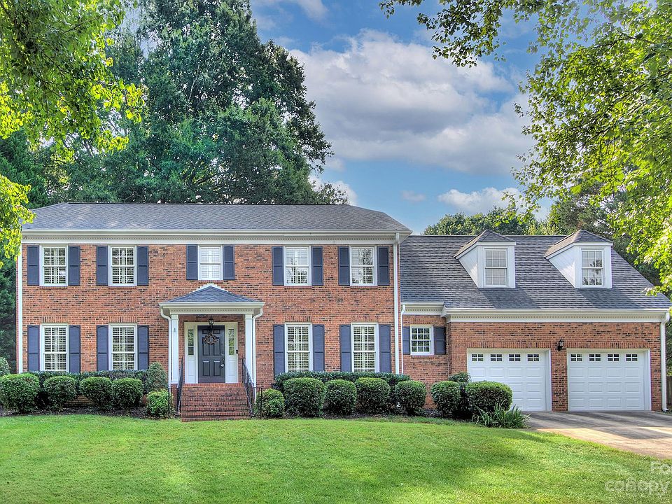 Remarkable full brick home nestled in the highly sought-after South Charlotte neighborhood. Situated across the street from private park that leads to scenic Little Sugar Creek Greenway. Elegance & style greet you at every turn, including hardwood floors on the main level & stairs and plantation shutters. Updated kitchen features painted white cabinets, tile backsplash, granite counters, gas cooktop, wall oven/microwave & new refrigerator. Crown molding adorns the main living areas, while picture frame molding adds elegance to foyer, dining, eat-in kitchen & den. Home also boasts cozy wood-burning fireplace, oversize garage w/ ample parking & storage, ceiling fans & an enormous bonus room that offers endless possibilities! Home has been meticulously maintained & updated including new windows, garage doors, back door, patio, gutters, HVAC, carpet & roof. Step outside to a sprawling paver patio that overlooks a private fenced backyard, perfect for outdoor entertaining & relaxation!