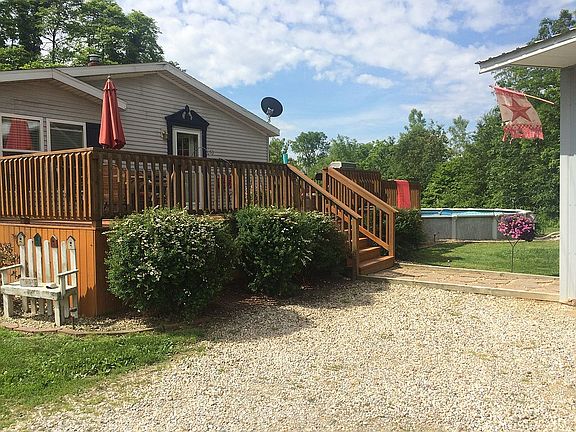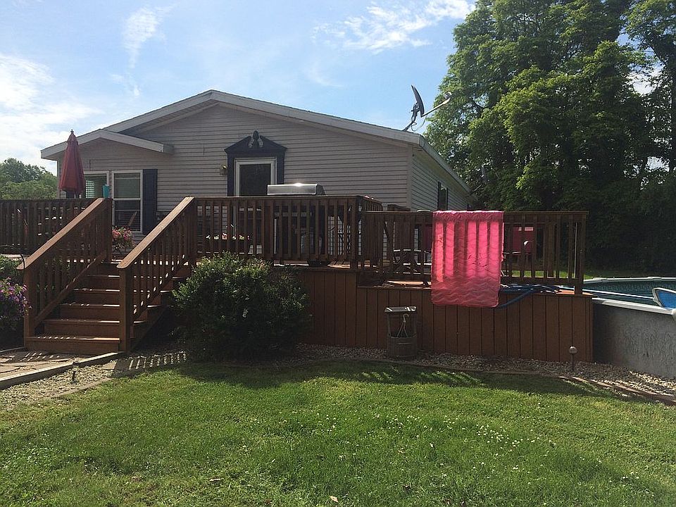 Nice home located out in the country with a detached 2 1/2 car pole barn. Sits on approximately 4 acres and sits a ways back off the road. Has a large deck you step on out the back door which leads to the swimming pool or the pole barn