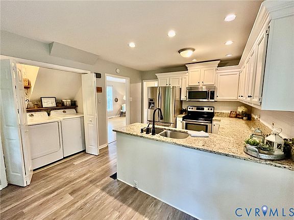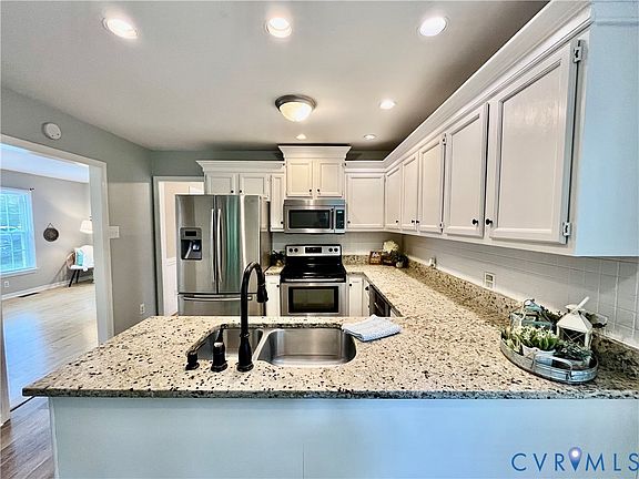 Beautifully maintained 3-bedroom, 2.5-bath home offering 1,248 sq ft of thoughtfully designed living space. Updated and move-in ready, step inside to a welcoming layout featuring tile, laminate and vinyl plank flooring, plush carpeting, and a bright, open living area. The renovated kitchen features granite countertops, tile backsplash, and stainless steel appliances—ideal for home cooks and entertainers alike. The primary suite includes a private bath with standing shower, while two additional bedrooms and a 2nd full bath offer flexibility for guests, or a home office. Enjoy year-round comfort with a 2-zone HVAC system, vinyl siding, vinyl front windows, and a multi-dimensional shingle roof. Laundry area with washer and dryer included adds everyday convenience. Outside, the backyard provides space for pets, gardening or weekend gatherings. Minutes to shopping, dining and entertainment. In the quiet, established Ashbrook neighborhood. Top-rated Chesterfield County schools.