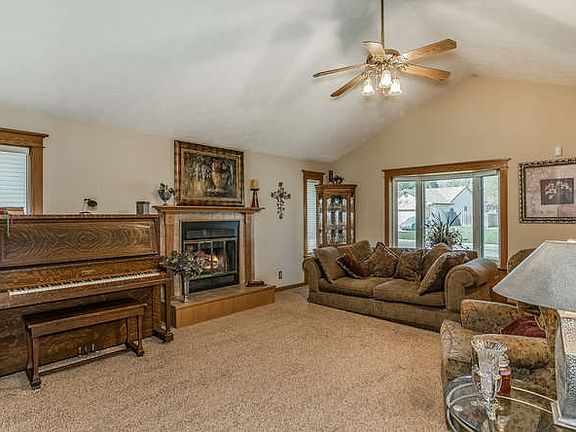 Well maintained ranch style home in quiet neighborhood is awaiting you. The living room has vaulted ceilings, lovely bay window and fireplace for your enjoyment. The kitchen has wood flooring with lots of counter space with an eating bar, which is open to the dining room also with wood flooring. Main level has 3 more bedrooms and 2 full baths. The finished basement offer wonderful entertainment space! Family room is spacious with a fireplace and just around a half wall is a perfect are for a game room. Also featured in the basement is the 4th bedroom, a full bath, laundry room with utility sink and a huge storage room (21 x 11)! Outside you will find a fully fenced back yard, with concrete and brick patio, and a storage shed. The yard is easy maintenance with the less than 4 year old sprinkler system. Enjoy the new wireless security system with Secure Net 1! Don't let this one slip by, come take a look inside.