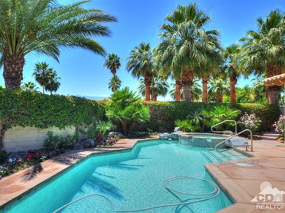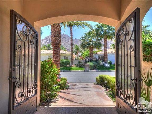 Gorgeous Ministrelli home offered furnished has fabulous south facing mountain views on premier corner lot within prestigious Painted Cove community at Indian Wells Country Club! Beautifully custom landscaped home has large, private gated Courtyard entry with pool, raised jet spa, covered patio, and lush landscaping. Neutral desert colors with travertine look tile floors throughout, and carpets in bedrooms and home office. Mediterranean style home has 3105 Sq. Ft. with 3 Bedrooms, 3.5 Baths, central home office, and open Gourmet Kitchen with granite countertops, Kitchen Island with spacious bar seating and pantry. Great Room has outstanding South Mountain views, beautiful custom built-in cabinetry, ledge rock fireplace, big entertainment center and flat screen. Great Room with large glass sliding doors out to patio, pool, and spa to maximize indoor/outdoor living at its best. Guest Bedrooms boast en-suite Baths and large closets. Elegant Master Bedroom Suite offers amazing views!